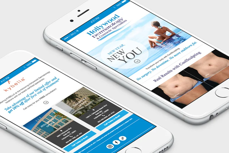 Hollywood Dermatology is home to an outstanding team of doctors with more than 25 years of experience and certified by the American Board of Dermatology. They offer the full spectrum of dermatologic services, including clinical, surgical, and cosmetic, with the latest and most revolutionary procedures, skin surgery, and rejuvenation techniques. We’ve taken inspiration from their logo and location in Florida to create a website that mimics the blue gradients in the sky and water.